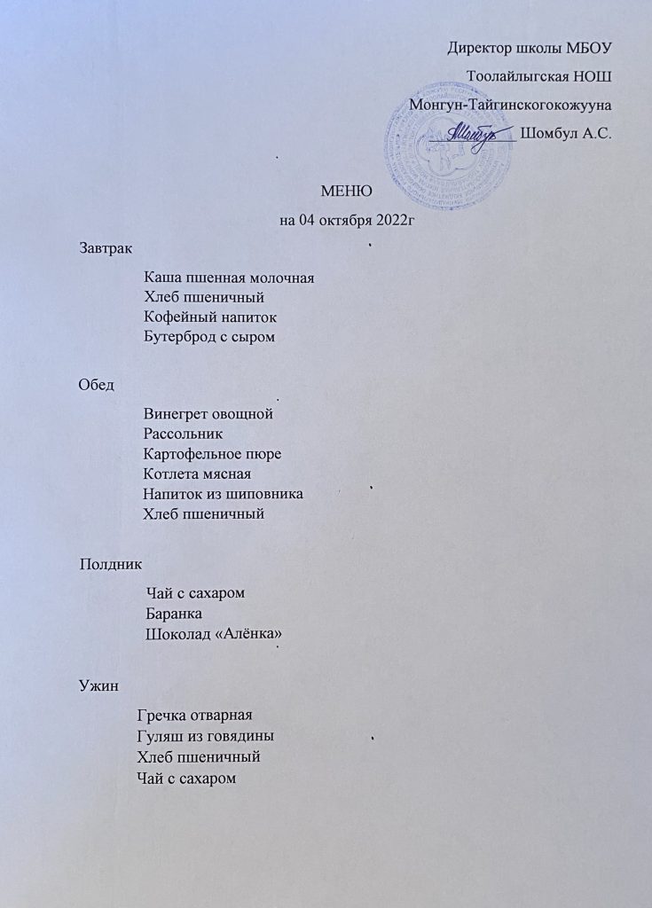 МЕНЮ 04.10.2022г