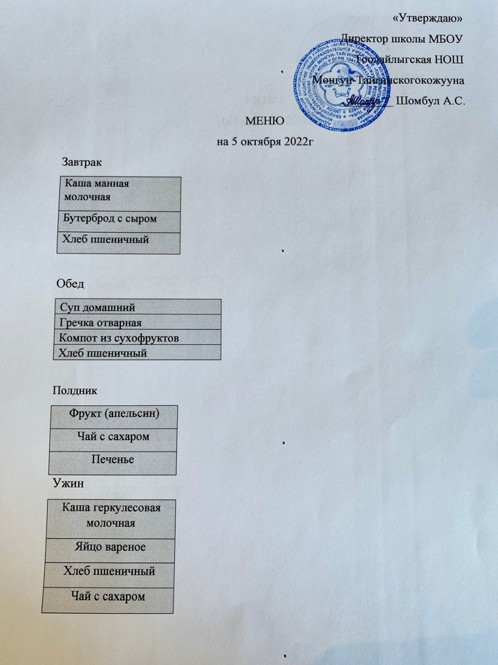 МЕНЮ 05.10.2022г