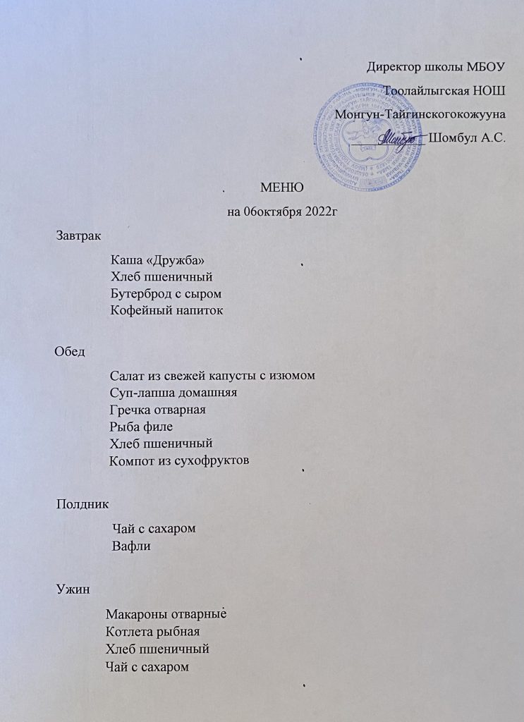 МЕНЮ 06.10.2022г