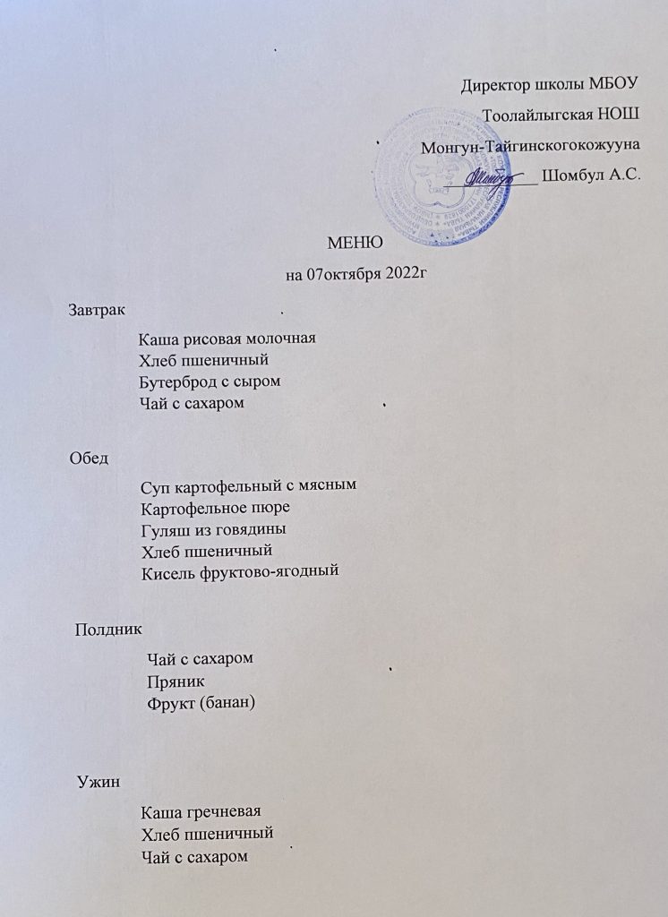 МЕНЮ 07.10.2022г