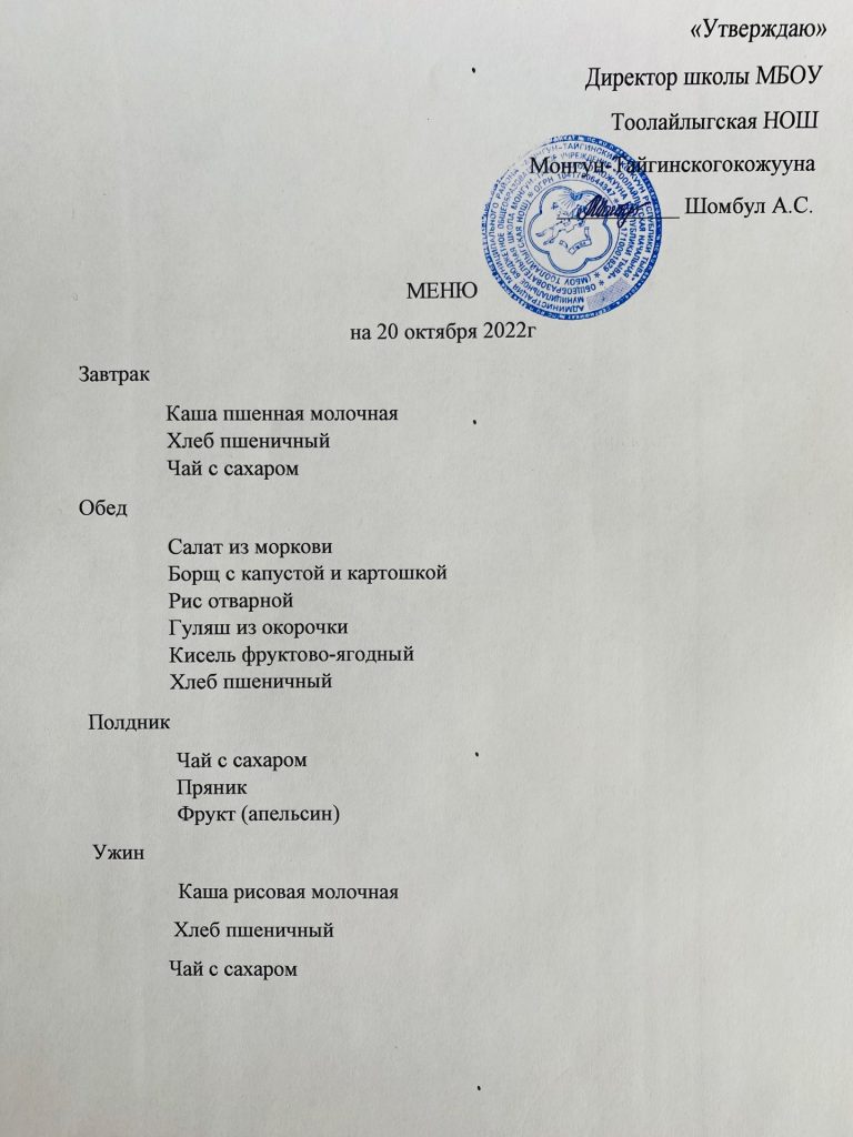 МЕНЮ 20.10.2022г