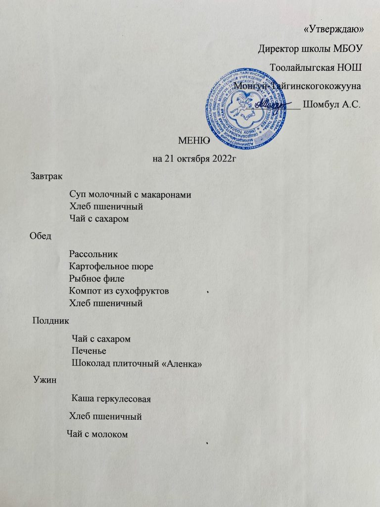 МЕНЮ 21.10.2022г