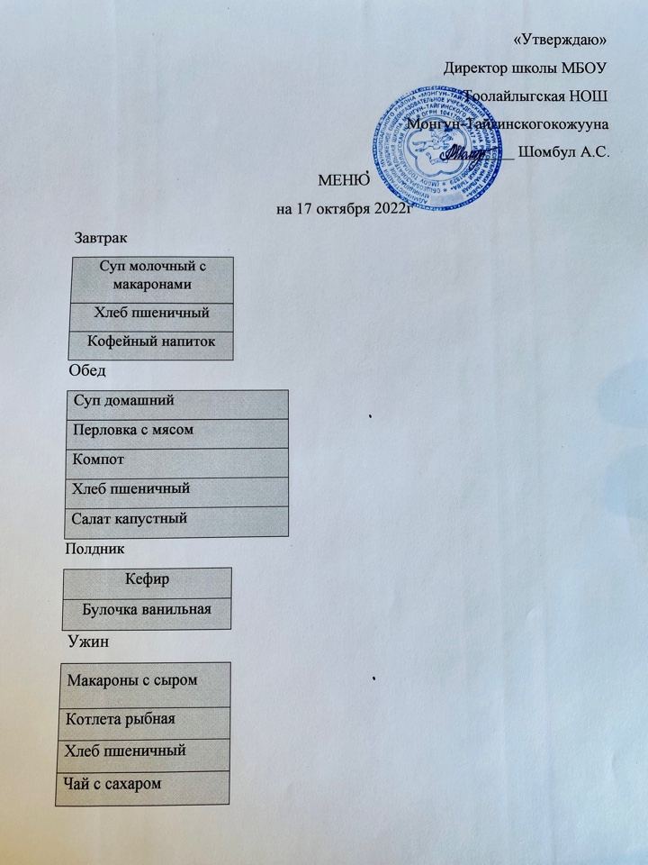 МЕНЮ 17.10.2022г