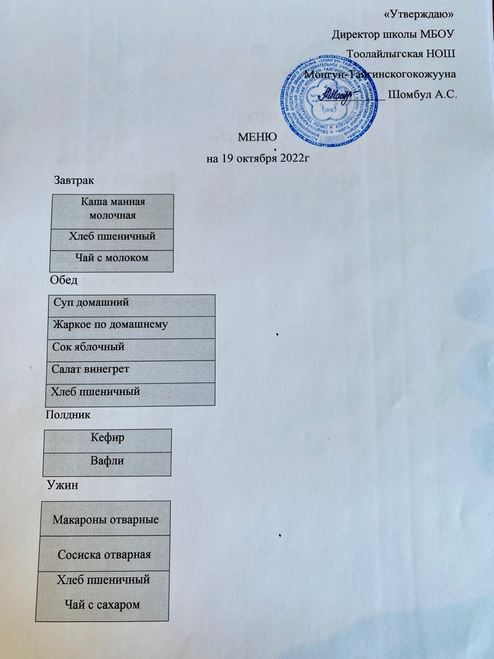 МЕНЮ 19.10.2022г