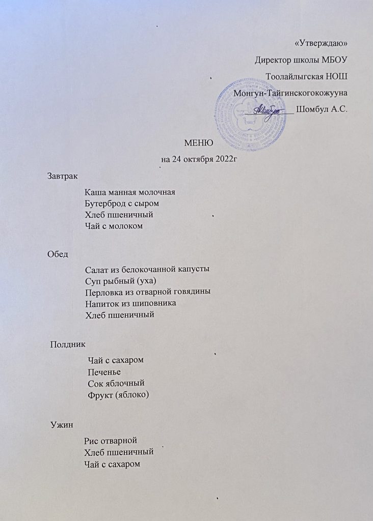 МЕНЮ 24.10.2022г
