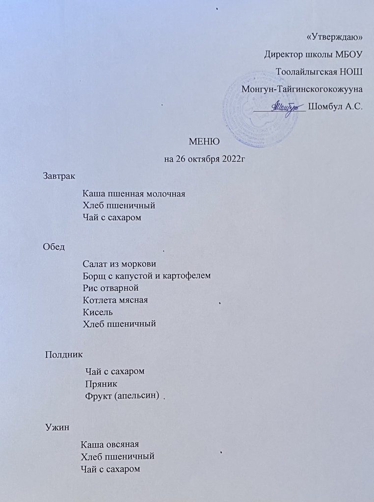 Меню 26.10.2022г