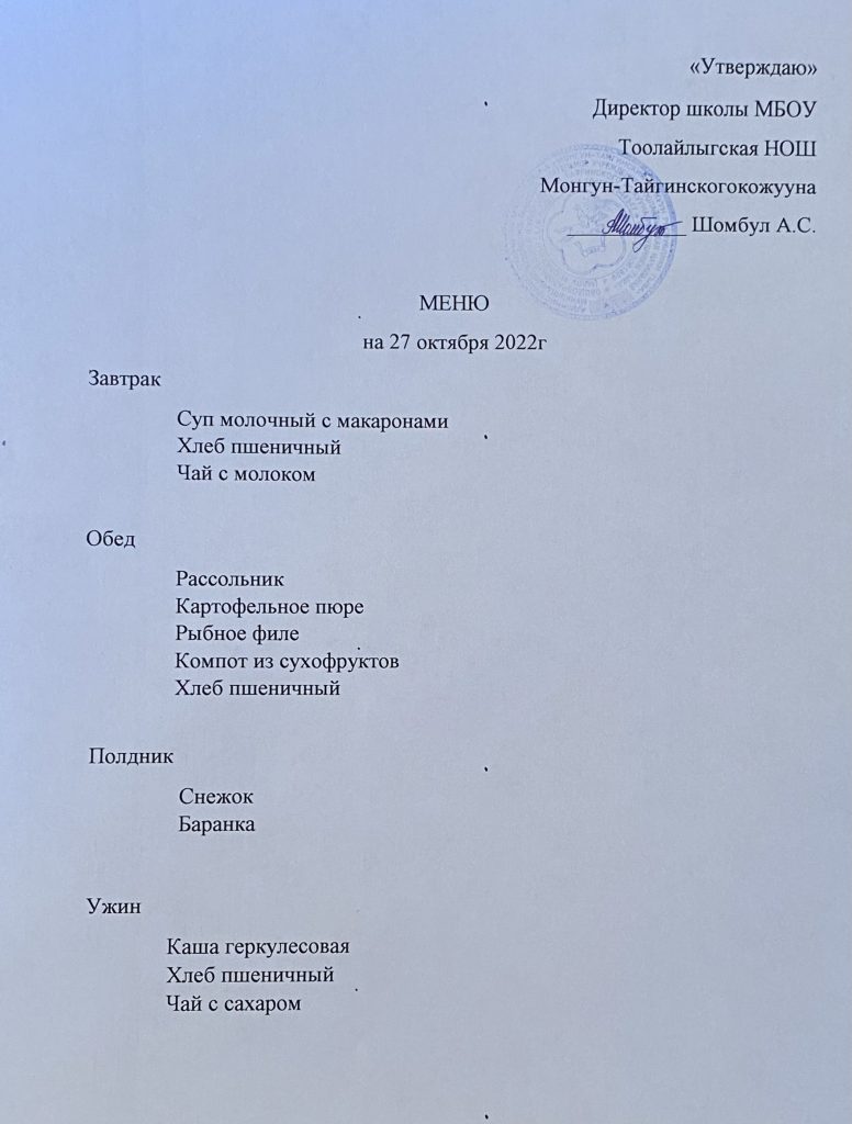 Меню 27.10.2022г