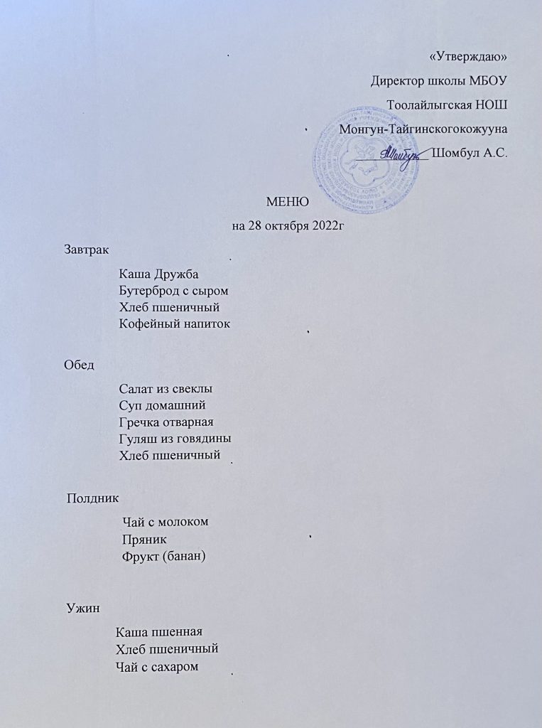 Меню 28.10.2022г