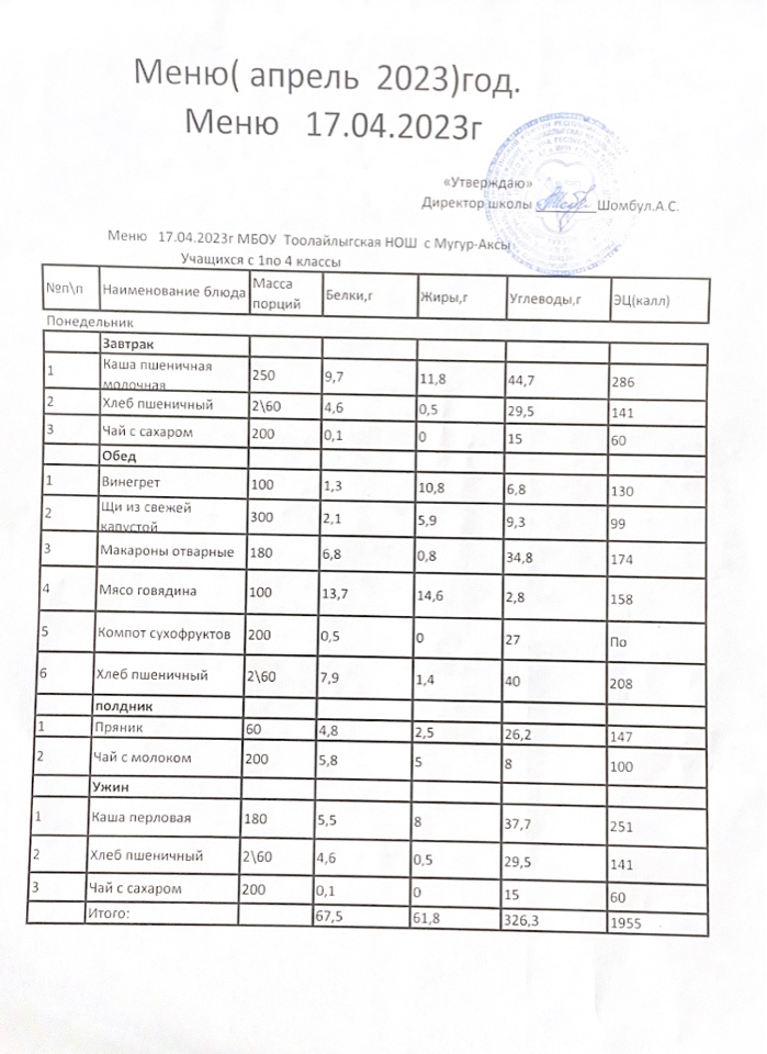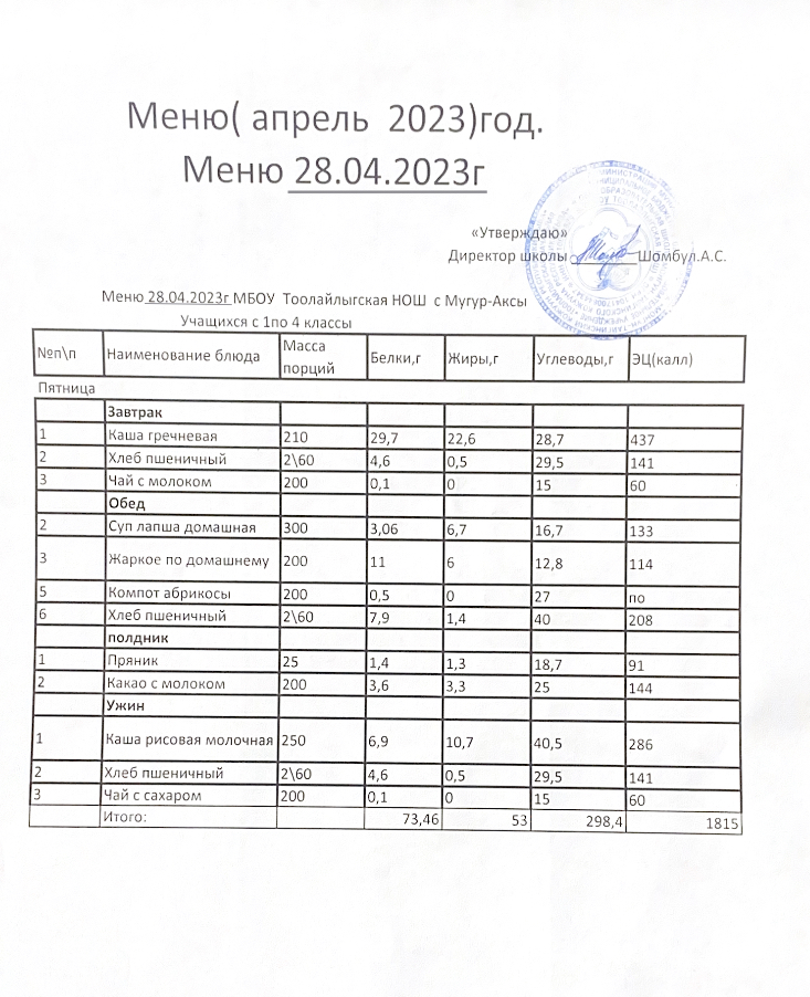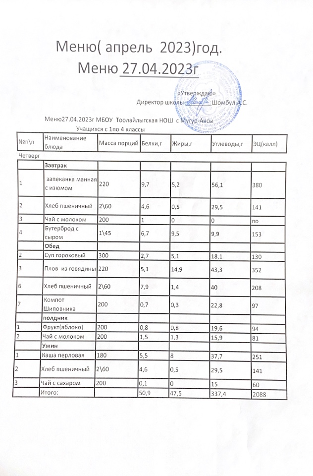 МЕНЮ НА 27.04.2023