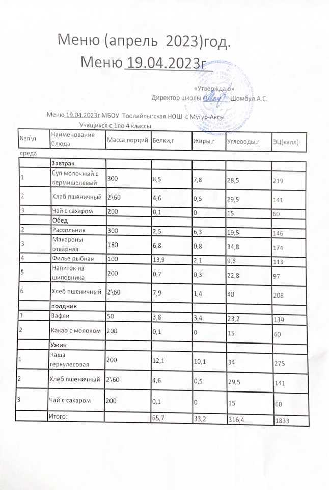 МЕНЮ НА 19.04.2023