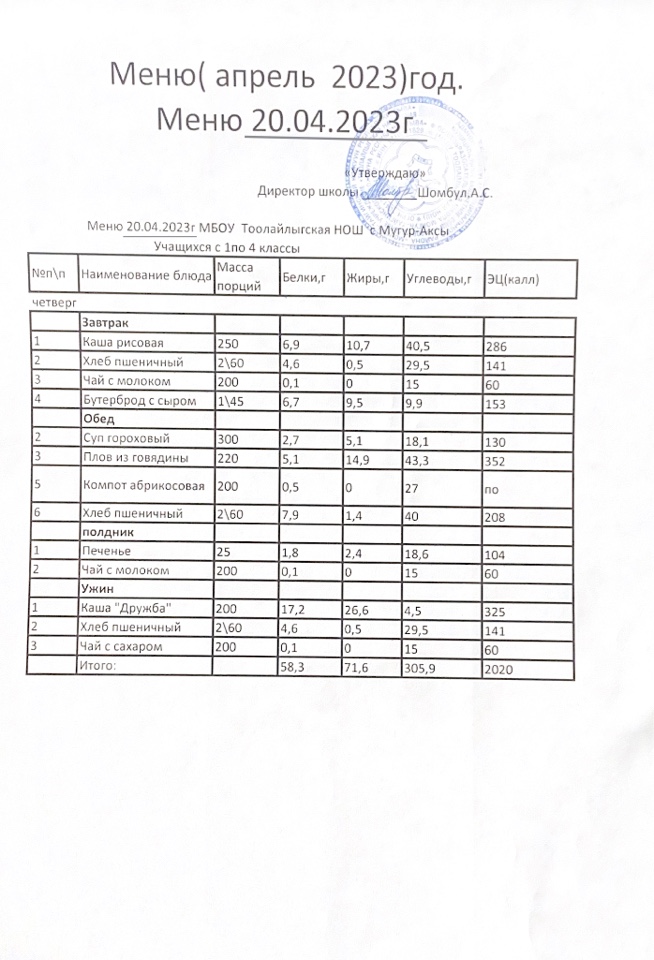 МЕНЮ НА 20.04.2023