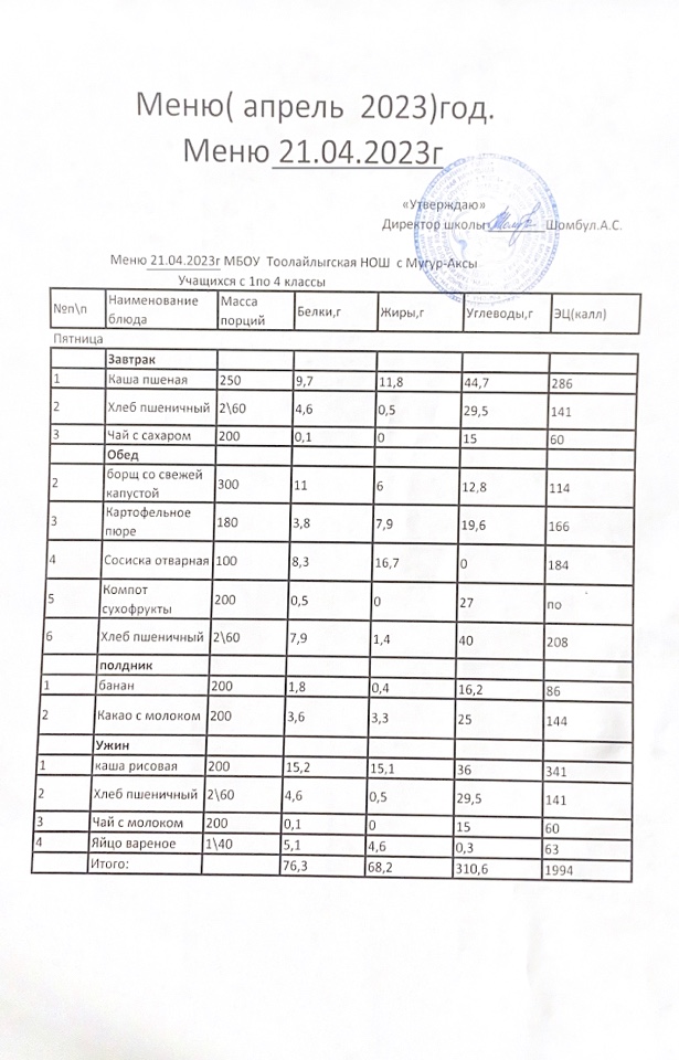 МЕНЮ НА 21.04.2023