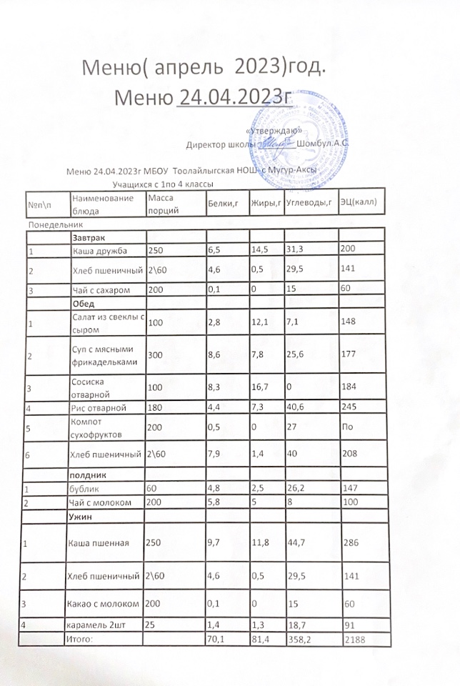 МЕНЮ НА 24.04.2023