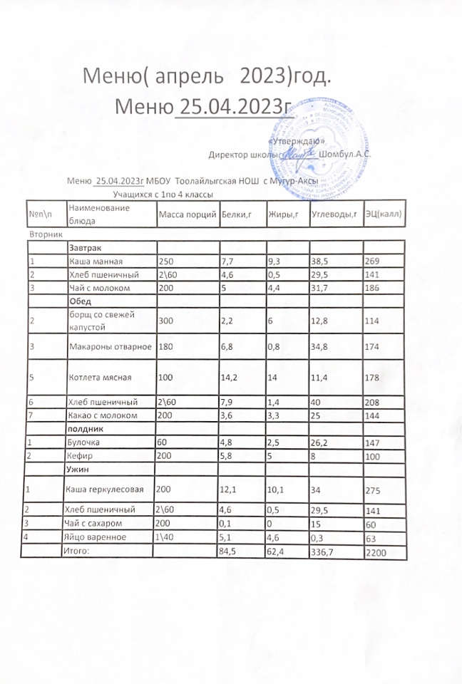 МЕНЮ НА 25.04.2023