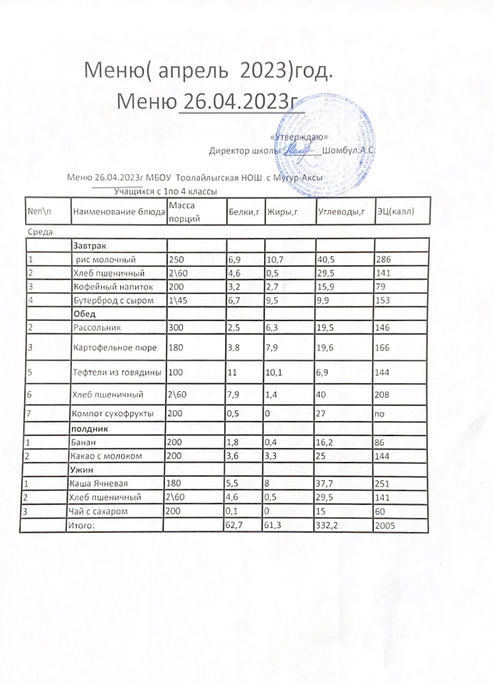 МЕНЮ НА 26.04.2023