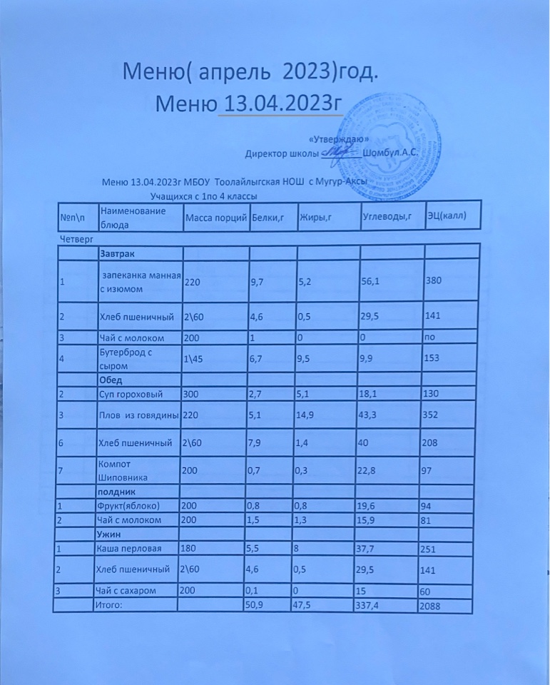 МЕНЮ НА 13.04.2023