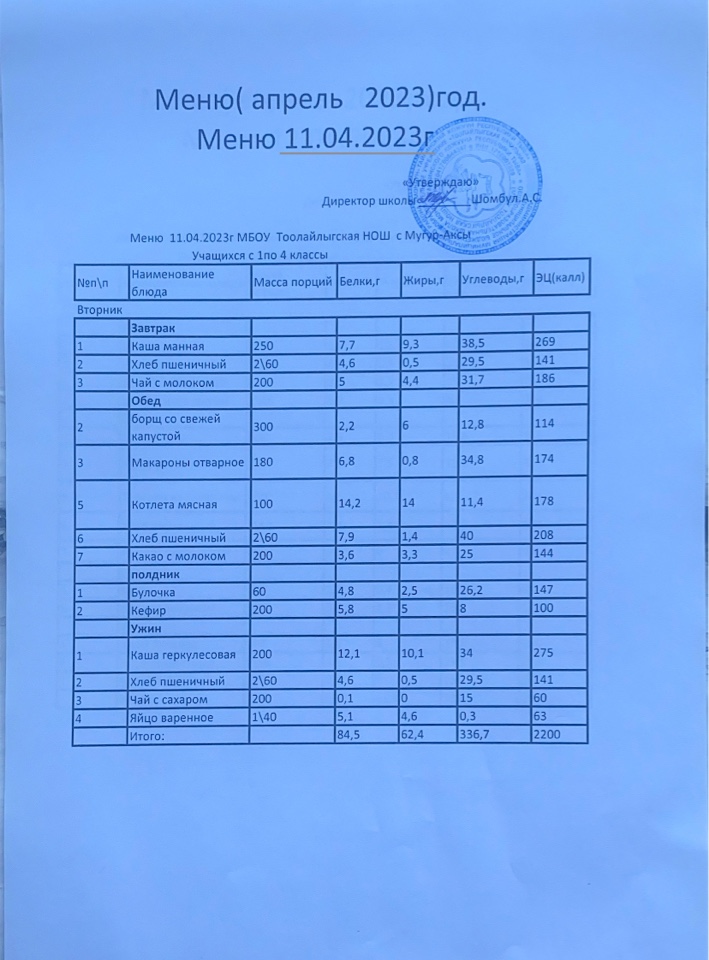 МЕНЮ НА 11.04.2023