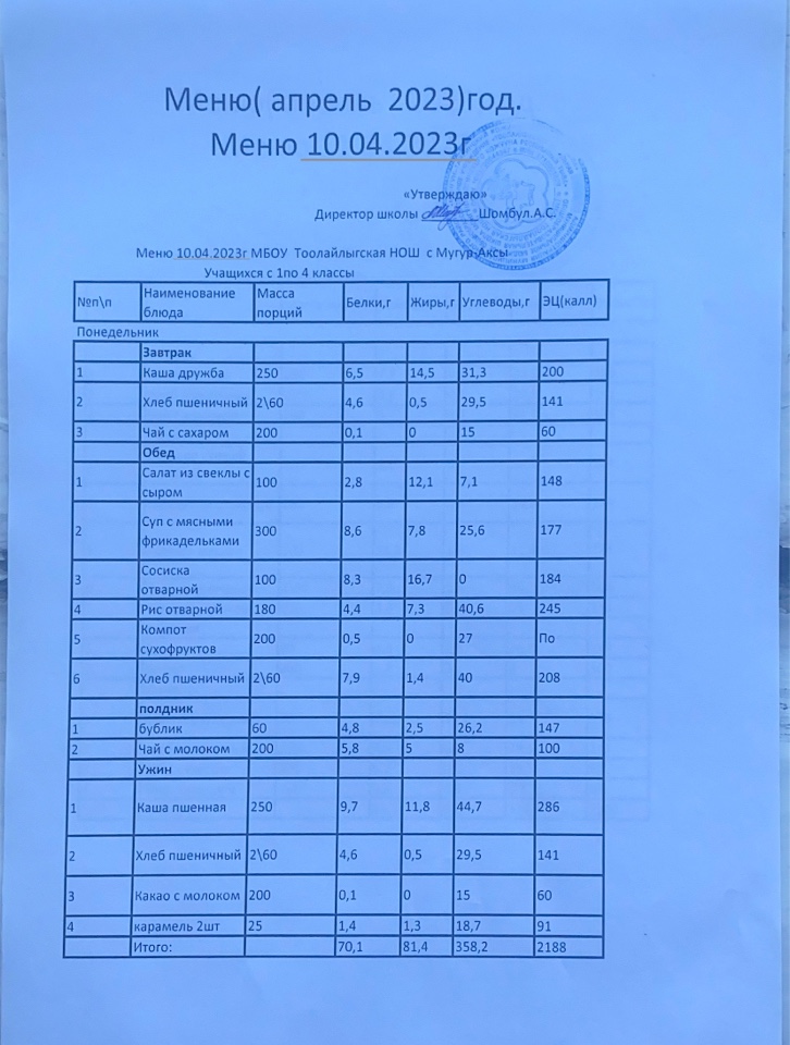 МЕНЮ НА 10.04.2023