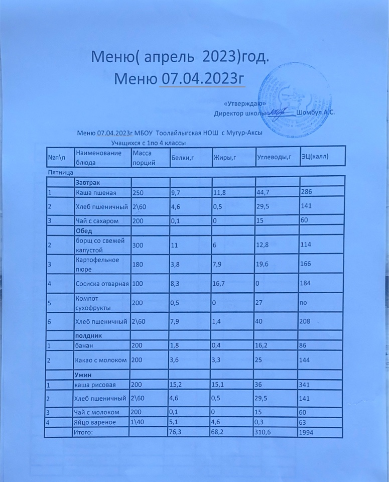 МЕНЮ НА 07.04.2023
