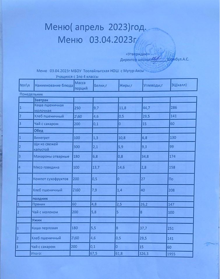 МЕНЮ НА 03.04.2023