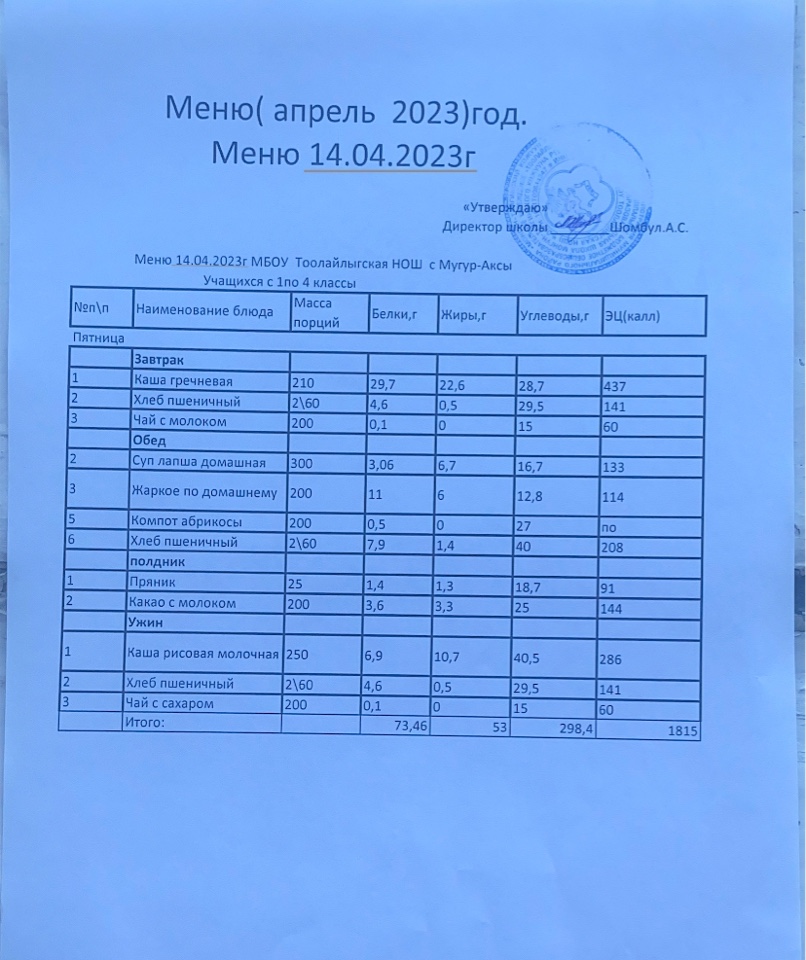 МЕНЮ НА 14.04.2023